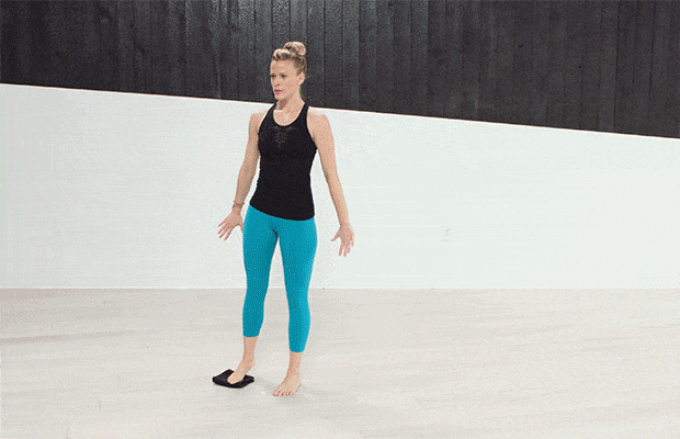 How to: Start standing with your feet hip-width apart, your right foot on the glider and your left foot planted firmly on the floor